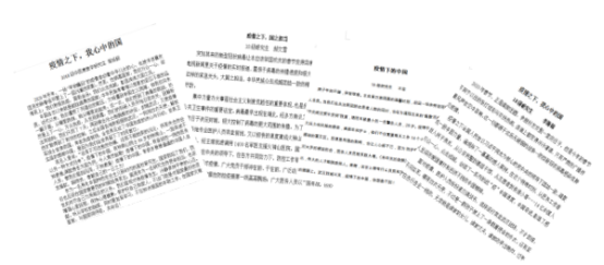 学生们有的通过疫情下医护人员不计报酬、挺身而出、一个个在请愿书上签字的感人事迹出发,抒发着对最美逆行者的崇高敬意;有的通过对共产党员身先士卒、积极到抗疫一线、参与抗疫战斗的先进事迹角度,赞美我们有责任、有担当的共产党员;有的通过对疫情下我国反应之迅速、抗疫成效之显著角度出发,歌颂我国制度之优势、大国之担当!