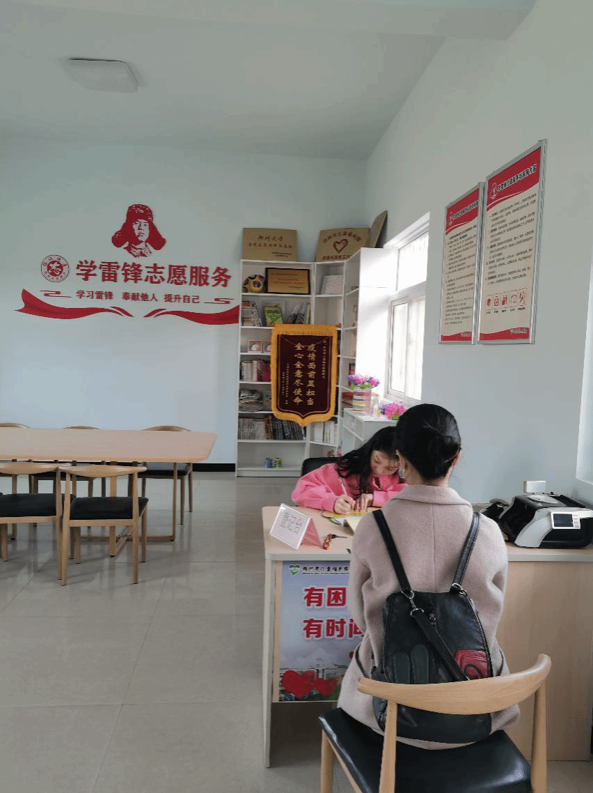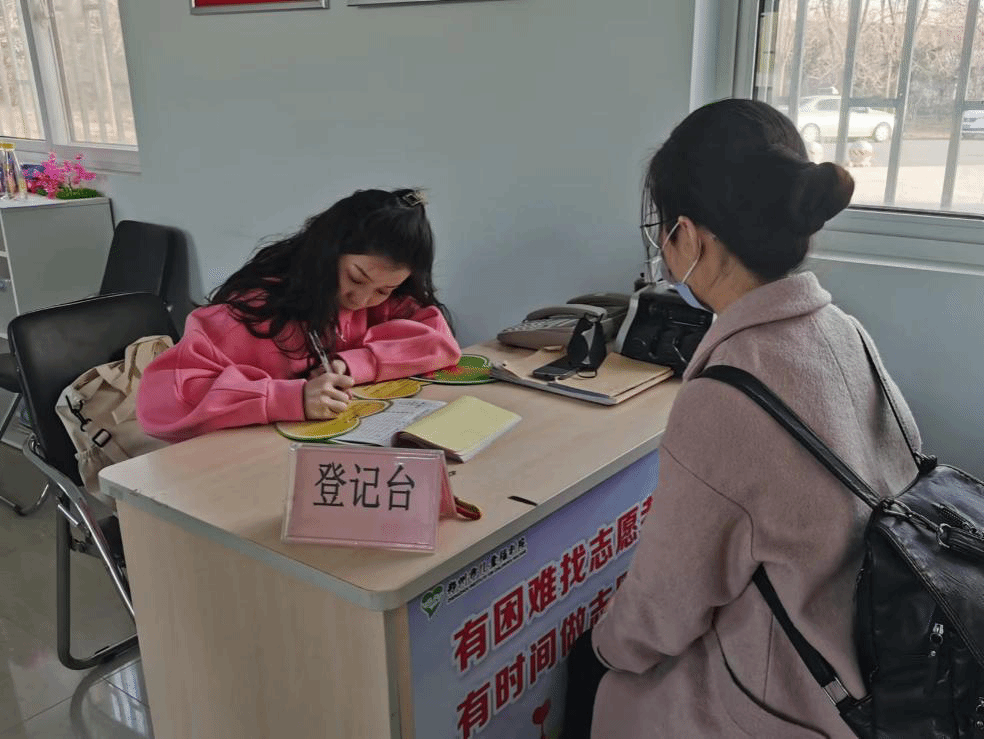等候爱心小屋工作人员登记捐赠信息