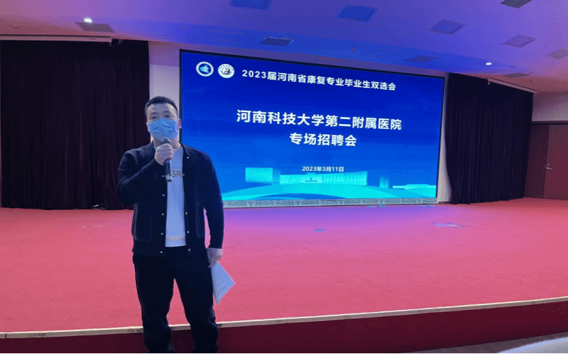 杨富斌希望全体毕业生能够积极参加本次专场招聘会,发挥自己的专业优势,应聘到理想的岗位。同时他强调,作为新时代大学生要发扬吃苦耐劳的精神,要戒骄戒躁,切勿眼高手低、好高骛远。会上,分别由汝州市骨科医院人力资源部主任毕老师、平顶山市第二人民医院王老师、河南科技大学第二附属医院杨老师、南阳市中医院司老师、新乡医学院第三附属医院杨主任等五家医院的负责人先后为学生具体介绍其医院的发展概况、医院文化、工作岗位及薪资待遇等方面内容。