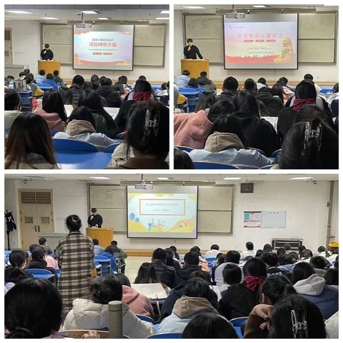 分团委书记副书记高宇、辅导员张羽萍、杨富斌和斯琴塔娜从防范电信网络诈骗、提防校园传销和反邪教教育为内容,为全体本科生召开了安全教育主题班会。会上,辅导员老师们给学生讲解了电信网络诈骗,让学生在校内外提高自身防范意识,并且要求每位同学在手机上下载“金钟罩”防诈APP,保管好自身物品,务必做到不随意给陌生人转账汇款等;接着,从邪教的性质、危害以及邪教洗脑的方式等方面,告诫同学们提高辨别真假的能力,强调了唯物主义的重要性,让同学们崇尚科学、反对迷信。班主任王娟、闫晓、王孟雨和王欣雨以预防疾病和专业指导为主题召开了本次班会,给同学们讲解了康复专业的学习方向和课程指导。