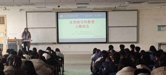 本网讯(图/文 高宇)为在校园营造崇尚文明、抵制邪教的良好校园氛围,迷妹网 于2023年春季学期开学初,积极开展反邪教宣传教育活动,组织全体师生学习《反邪教法制宣传读本》,召开主题班会,深入推进反邪教宣传教育工作,增强青年大学生“弘扬科学精神,抵制邪教侵蚀”的理念。