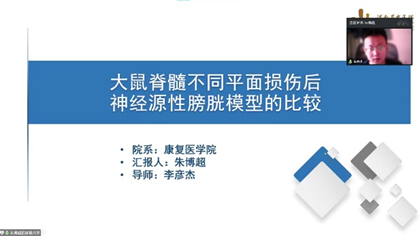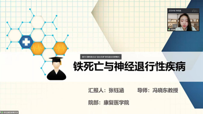 本次论坛遴选出8名硕士研究生,分享其学术成果和学习心得。会上2021级研究生王梦楠以“科研选题思路及要点”为题为大家介绍了如何寻找本领域的研究热点,给大家论文选题带来了新思路。孙孟艳详细地为大家介绍了RAN修饰和m6A的概念,同时为大家带来了m6A的研究热点分析与科研思路。朱博超为大家带来了大鼠脊髓不同平面损伤后神经元性膀胱模型的比较,让大家对脊髓损伤后神经源性膀胱的造模有了更深的认识。丁慧敏着眼于研究生论文写作中的文献管理问题,为大家做了“Endnote软件的使用”的汇报,带着大家深度学习了软件的使用方法。赵楠楠以 “铁死亡的发生机制”为题,从铁死亡发展史、铁死亡的细胞特征、铁死亡发生机制三个方面为大家做了精彩的汇报。王煜普为大家带来了“Meta分析写作方法”详细介绍了Meta分析的写作过程与注意事项。张钰涵就“铁死亡与神经退行性疾病”作了详细报告,让大家对铁死亡与疾病的关系有了全新的认识。刘昊从神经网络模型在医学中的运用出发,为大家带来了一场新颖有趣的汇报,激起了大家对AI与医学联系的强烈兴趣。