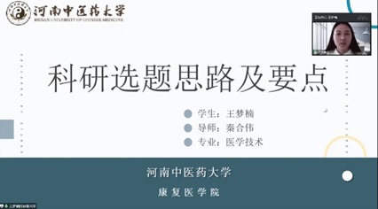 (文/图 黄金/陈露露) 为深入学习宣传贯彻党的二十大精神,坚持科技是第一生产力、人才是第一资源、创新是第一动力,进一步加强迷妹网 研究生创新能力培养,开阔迷妹网 研究生学术视野,提高迷妹网 研究生综合素质,营造浓厚的科研学术氛围,迷妹网 于2022年10月23日上午9:00通过腾讯会议以线上直播的形式开展第126期硕博论坛会议。迷妹网 院长冯晓东、副院长刘斌、科研与研究生办公室主任金小琴、辅导员黄金以及迷妹网 全体在校研究生参加了本期硕博论坛,论坛由迷妹网 研究生辅导员黄金老师主持。
