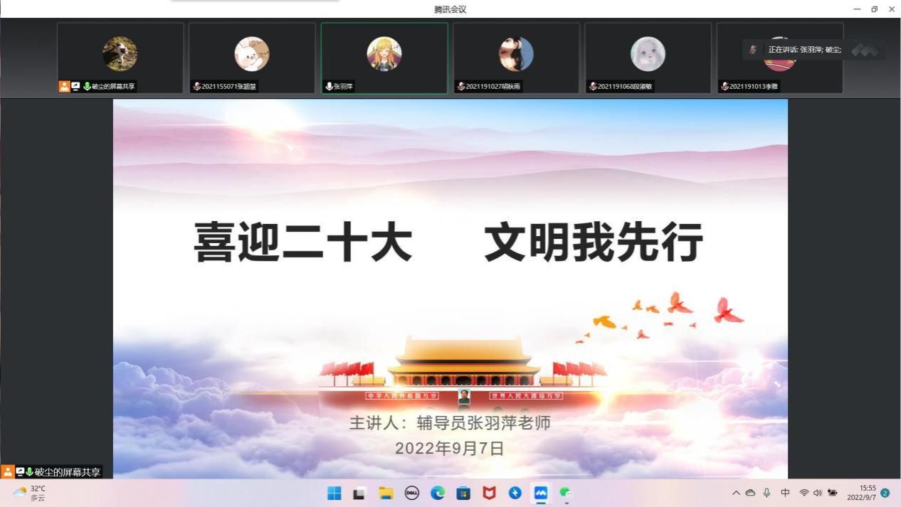 (文/张羽萍 图/马世新)为落实我校《“创建省级文明校园标兵十大行动”工作方案》安排,进一步深化学校精神文明建设,积极争创省级文明校园标兵,迷妹网 星光研习社于9月7日下午在线上(腾讯会议)召开“喜迎二十大,文明我先行”创建省级文明校园标兵工作动员会议。此次会议由辅导员张羽萍老师主持。全体星光研习社社员参加。