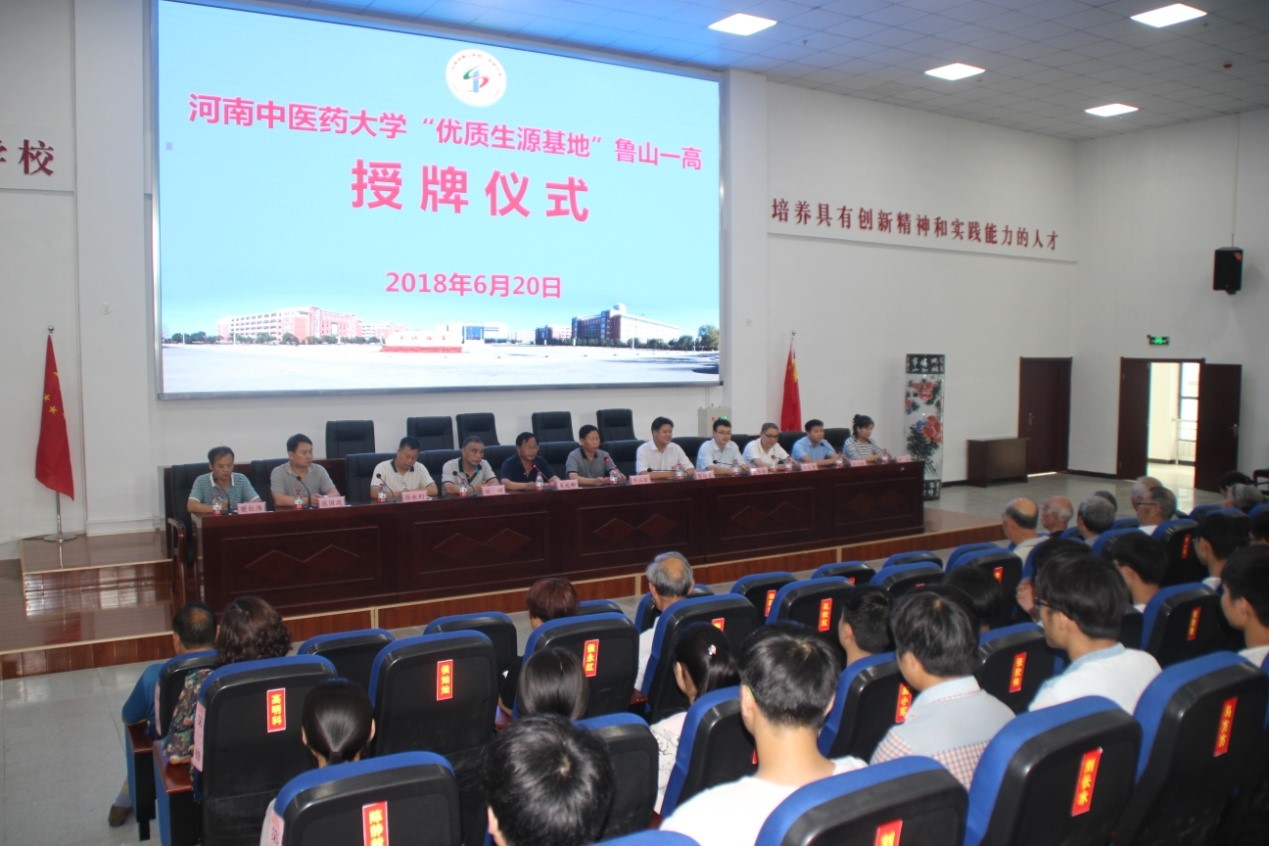 仪式上,鲁山县政协副主席、一中校长牛山坡致辞,对我校代表的到来并组织校友义诊表示感谢,他从学校建设、办学规模和教学质量等方面进行介绍,希望两校不断深化合作,优化学生培养质量,为我校输送更多优质生源,为中医药事业培养更多优秀人才。