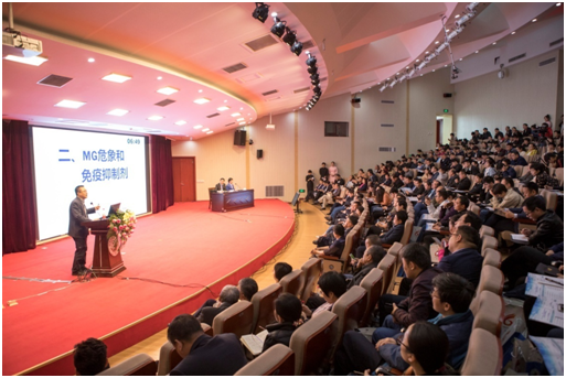 本次学术会以“中西合璧,医药共济;打破壁垒,优化资源”为主题,针对神经免疫性疾病诊疗领域新思路、新方法、新技术、新进展进行广泛的交流。分为河南省神经免疫年会、国家继续教育项目、重症肌无力、名老中医经验交流会、科研协作五个专场。国家卫健委北京医院神经科主任医师、泛亚太多发性硬化治疗和研究委员会常委许贤豪教授、中国中医科学院西苑医院张允岭教授、中山大学附属第三医院胡学强教授、空军军医大学唐都医院李柱一教授、北京同仁医院王佳伟教授和于磊教授,英国兰卡斯特大学终身教授克里斯汀·霍尔舍(Christian Hölscher)以及国内知名专家刘卫彬教授、段瑞生教授、杨欢教授、李海峰教授、郝洪军教授、都爱莲教授;还邀请到省内知名专家杨波教授、苗明三教授、徐立然教授、马云枝教授、赵文霞教授、全国名老中医李发枝教授等42名长期从事免疫性疾病中西医诊疗的国内外著名专家学者莅临授课,围绕免疫性疾病的中西医预防、诊断、治疗、康复、健康管理以及科研等做精彩演讲。迷妹网 张运克教授以“多发性硬化的中西医防治进展”进行了宣讲。