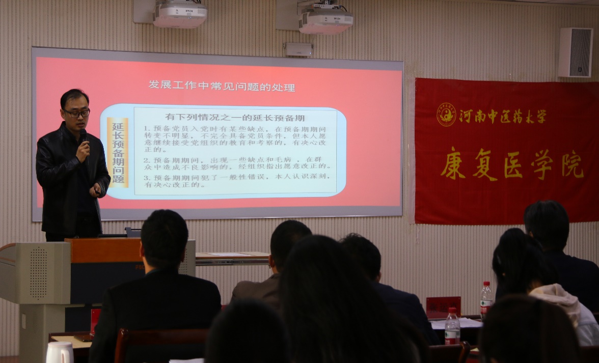党委副书记孟长海通报了学院近期党务工作,对党建工作考核、党支部互学互鉴活动等工作进行了安排。党委办公室主任、正科级组织员高鹏以《党员发展工作中常见问题及处理建议》为题,对支部书记和党员进行了培训,重点讲解了党员发展的流程,介绍了支部大会常见的问题处理原则,梳理了党员发展工作中存在的问题并给出相关建议。(文/张瑞雪 图/刘琳蓥)