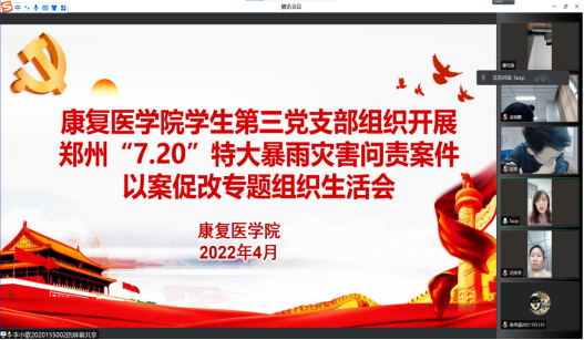 学生第三党支部线上组织开展郑州“7•20”特大暴雨灾害问责案件以案促改专题组织生活会中