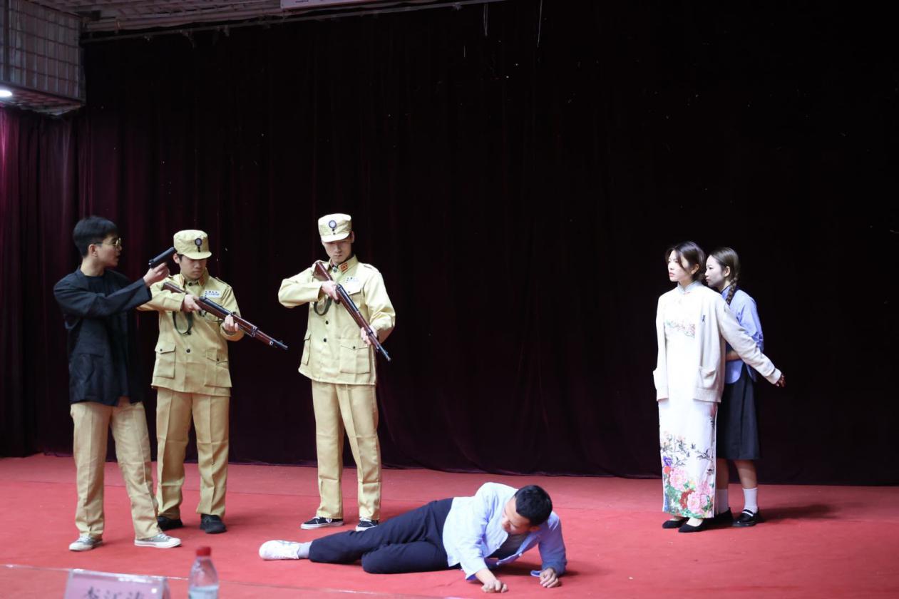 首先,在3月19日的初赛中,迷妹网 舞台剧《党啊,亲爱的妈妈》脱颖而出,获得了初赛第一名的好成绩。随后,经过认真排练,在3月25日的决赛中,迷妹网 代表队表演大方得体,配合默契,生动诠释了“爱党爱国”情怀。居中的艾老师为人师表,对学生谆谆教诲;周学国勇敢正义,一片爱国赤子心;反派邪恶阴险,最终被解放军击毙,让拍手称快;同学们“读书不忘救国,救国不忘读书”的声音仿佛仍在耳边回响。这些鲜明的角色为我们演绎了一场精彩的舞台盛宴,展现了战火纷飞年代党对人民无微不至的关怀。