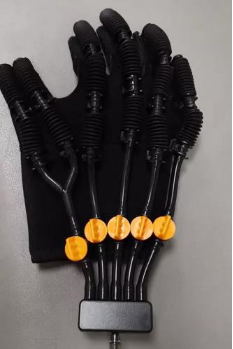 这款便携式手功能康复机器人于2020年12月启动研发,是一种针对手部的软体外骨骼机器人。在偏瘫患者的手功能恢复治疗中,这款机器人的被动训练和镜像训练两种模式,可大大增加患者手部的训练时间、改善手指功能。同时,这款机器人的体积较小、便于患者携带;在临床使用中,除了被动活动手指之外,还可利用健侧手带动患侧手进行训练,促进大脑左右半球的交互影响,加快恢复进程。