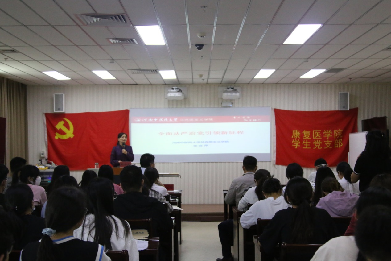 宣讲会上,张会萍教授主要从全面从严治党是马克思主义政党的基本要求;全面从严治党是推进国家治理体系和治理能力现代化的时代要求;全面从严治党是全面建成社会主义现代化强国的坚强保障三个方面为全院师生进行精彩的宣讲;张教授指出,全面从严治党永远在路上,全体党员要学党史、悟思想、办实事、开新局,为学校的建设和发展贡献自己的一份力量。