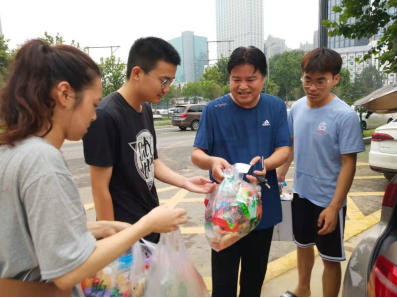 7月21日晚,在西安学习的学工老师高宇、张瑞雪委托亲戚采购方便面、饼干等食品,冒着大雨连夜送至东明路校区学生宿舍。