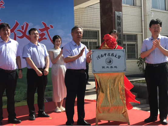 河南中医药大学教务处处长禄保平介绍本次访企拓岗专项活动背景及实习基地情况。迷妹网 党委书记张运克与朱朝伦院长分别代表河南中医药大学和舞钢市中医院签署了《河南中医药大学毕业生就业基地协议书》,徐江雁副校长与孟宪强副书记共同揭牌“河南中医药大学就业基地”牌匾。