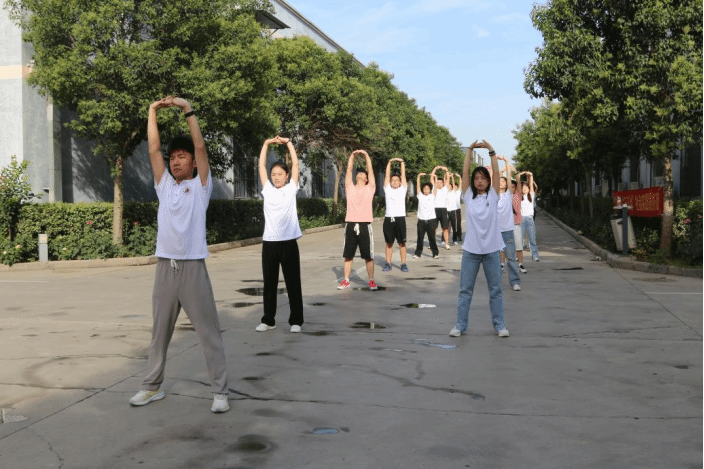 2023年7月6日早上7:30,康复朝阳社会实践服务团的队员来到了翔宇医疗基地的晨操集合处,为基地员工进行健身功法八段锦的演示并带领五十多名员工进行晨练。此次活动为传播中医药文化知识,继承和弘扬中华民族优秀传统文化贡献了青春力量。