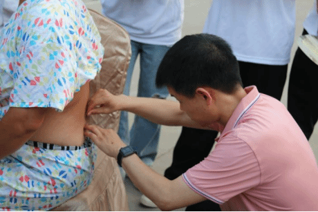 7月6日下午18:30,在随队专家陈岩博士以及辅导员张羽萍、杨富斌的带领下,康复朝阳社会实践服务团在翔宇医疗示范园区中为其员工展开了健康义诊活动。经过服务团成员的诊疗,许多肩颈腰椎疼痛的患者表示疼痛得到了极大程度的缓解,前来就诊的患者络绎不绝。