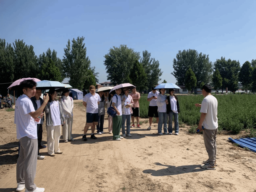 丁经理简单介绍了翔宇医疗的艾草种植规模以及艾草的简单特性。中药是中医学治疗疾病的重要组成部分,也是中医学的重要标志之一。作为河南中医药大学的学子,服务团的成员对本次参观艾草园地有着浓厚的兴趣,她们利用所学知识从艾草的发现起源、生长过程、特性、成品类型、用途用法等几个方面为大家讲解艾草的相关知识。