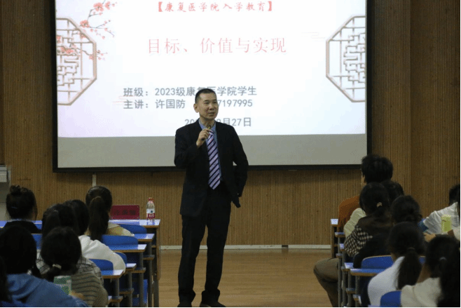 许国防副院长以“目标 价值 实现”为主题,为2023级新生开展了别开生面的入学教育。首先,副院长许国以一系列关于目标和价值的实际问题的追问为引,启发同学们对自身目标和价值的思考。接着从三方面教导同学们:一是要敢于追求目标,目标不在未来,要珍惜当下的时光,不断拼搏向前;二是要树立正确的价值目标,要将个人目标与社会理想相结合;三是要端正学习态度,掌握正确的学习方法,养成良好的学习习惯,做一个会思考的人。