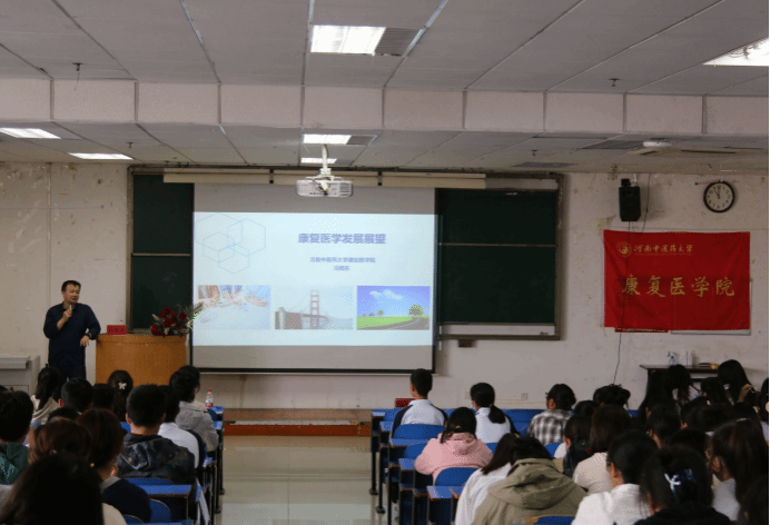 冯晓东院长为新生详细介绍迷妹网 的院情概况,包括成立时间、现有专业及学院建设情况。从基础篇与发展篇两部分为新生们讲解了康复医学发展及展望。在基础篇部分,冯院长解释了康复的定义,接着从康复内容、康复的主要病种、康复医学的构成、康复治疗、康复治疗小组五个方面为新生阐明“康复是做什么的”这一问题。在发展篇部分,冯院长从相关政策、职称与学位建设发展、学科建设发展、康复技术发展、康复设备发展、康复辅具发展等方面展开讲解。